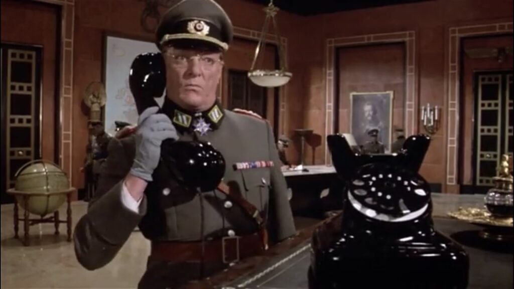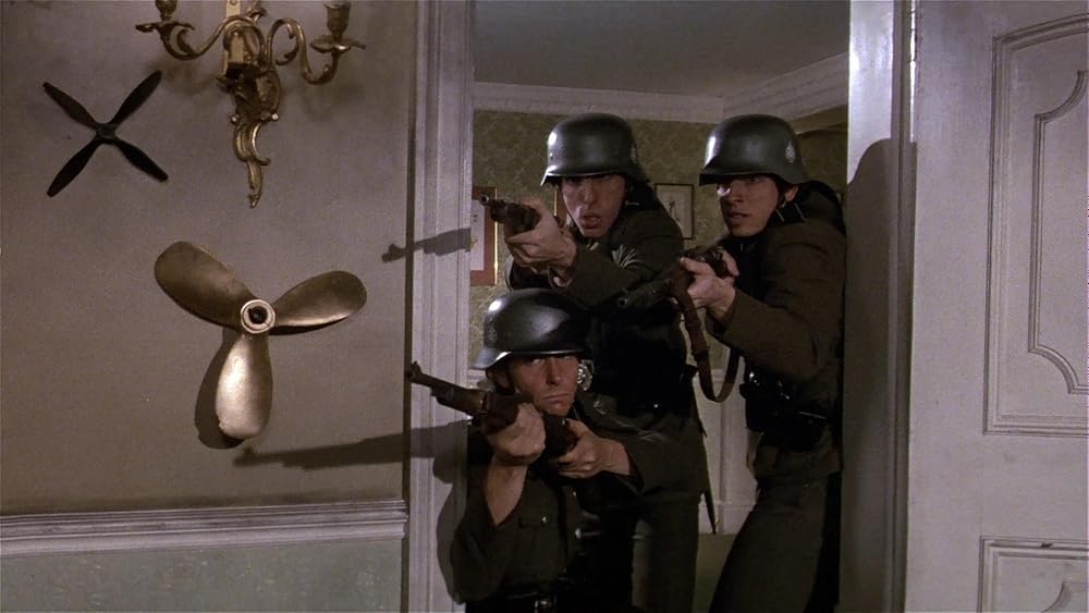 31. LOS NAZIS QUE NO ERAN NAZIS… ERAN NAZIS. Se supone que los alemanes de la película son alemanes orientales, pero sus uniformes son de la época nazi sin las esvásticas; hay que señalar que los uniformes de Alemania Oriental se parecían más a los nazis que a los de Alemania Occidental, debido a que la RDA reutilizaba viejos uniformes nazis, así que hay un toque de veracidad televisiva. BONUS: Los tres nazis que entran en una habitación tirando la puerta abajo son ni más ni menos que los tres directores del film. BONUS 2: “Un chiste muy bueno es cuando uno de los miembros de la resistencia francesa lanza a un guardia alemán por el precipicio, y este cae al suelo y se rompe en mil pedazos”, cuenta Jerry Zucker. ¿Cómo se logró tal efecto? “Estaba hecho de yeso”.