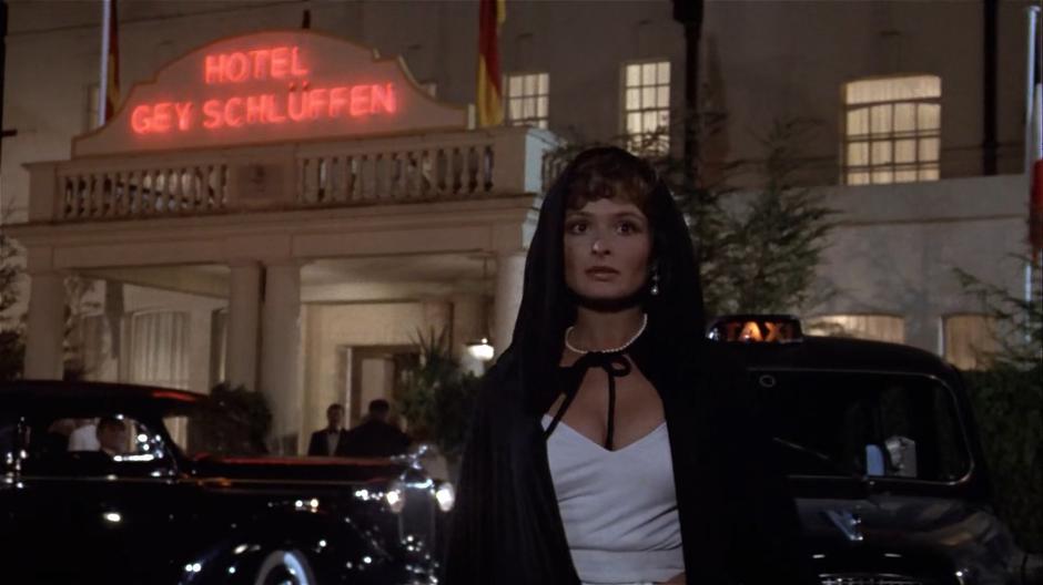 18. MUCHAS DE LAS FRASES EN ALEMÁN DE LA PELÍCULA NO TIENEN SENTIDO. A los actores que interpretaban a los villanos de Alemania del Este se les pedía a menudo que dijeran cualquier cosa que sonara furiosa y europea, como la frase «Ich liebe dich mein schätz!» («te amo, mi dulce»), que el oficial Von Horst grita marcialmente en respuesta a la orden del general Strecht, o el «Hotel Gey Schlüffen» (en yiddish, algo así como «buenas noches» o «andá a dormir»). Algunos incluso inventaron palabras falsas en alemán. De hecho, a un actor se le escapó la frase «sauerkraut disco» durante una discusión a gritos. Los espectadores que hablaban alemán de verdad estallaban en carcajadas o se quedaban mirando, totalmente confundidos. Los cineastas admitieron más tarde que priorizaron el ritmo y el tono sobre la traducción real.