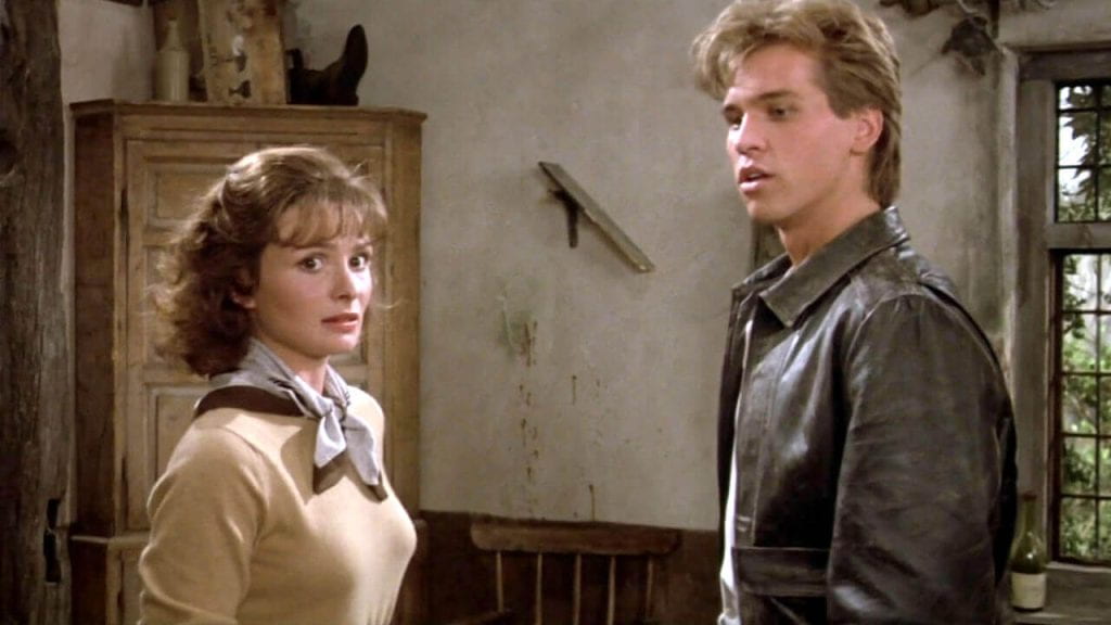 7. EL PRIMER PAPEL DE VAL KILMER EN UNA PELÍCULA FUE ESTE. Antes de Batman, antes de «Top Gun», y mucho antes de convertirse en un ícono de Hollywood, el carilindo (pero muy buen actor) Val Kilmer fue elegido para interpretar al galán del rock and roll Nick Rivers. Los Zucker y Abrahams se interesaron en Kilmer después de verlo en una obra de teatro llamada «Slab Boys«, tras lo cual fue llamado a audicionar