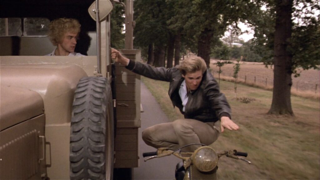 5. LOS CAMEOS ESTUVIERON PROHIBIDOS. Una política que los Zucker y Abrahams tenían con Top Secret! era no tener caras famosas haciendo cameos a lo largo de la película, ya que ese fue un gag que se hizo previamente en «Airplane!«: Simplemente no querían repetirse. Por eso no hay muchas caras conocidas en «Top Secret!», con la excepción de Omar Sharif, famoso por «Dr. Zhivago«, Peter Cushing, famoso por tantas películas de Hammer Horror, y Michael Gough (el Dr. Flammond, padre de Hillary), famoso por ofrecerle un sándwich a Batman en las peliculas de Tim Burton y de Joel Schumacher (curiosamente, volvería a trabajar junto a Kilmer en «Batman Forever»). Sin embargo, los famosos cameos cómicos resurgirían años después en «The Naked Gun!«, otra joya de los ZAZ. BONUS: A pesar de la regla que los prohibía, hubo rumores acerca de la posible inclusión de un cameo de una importante estrella de rock, posiblemente Mick Jagger o David Bowie. Pero esto nunca sucedió por motivos que se desconocen.