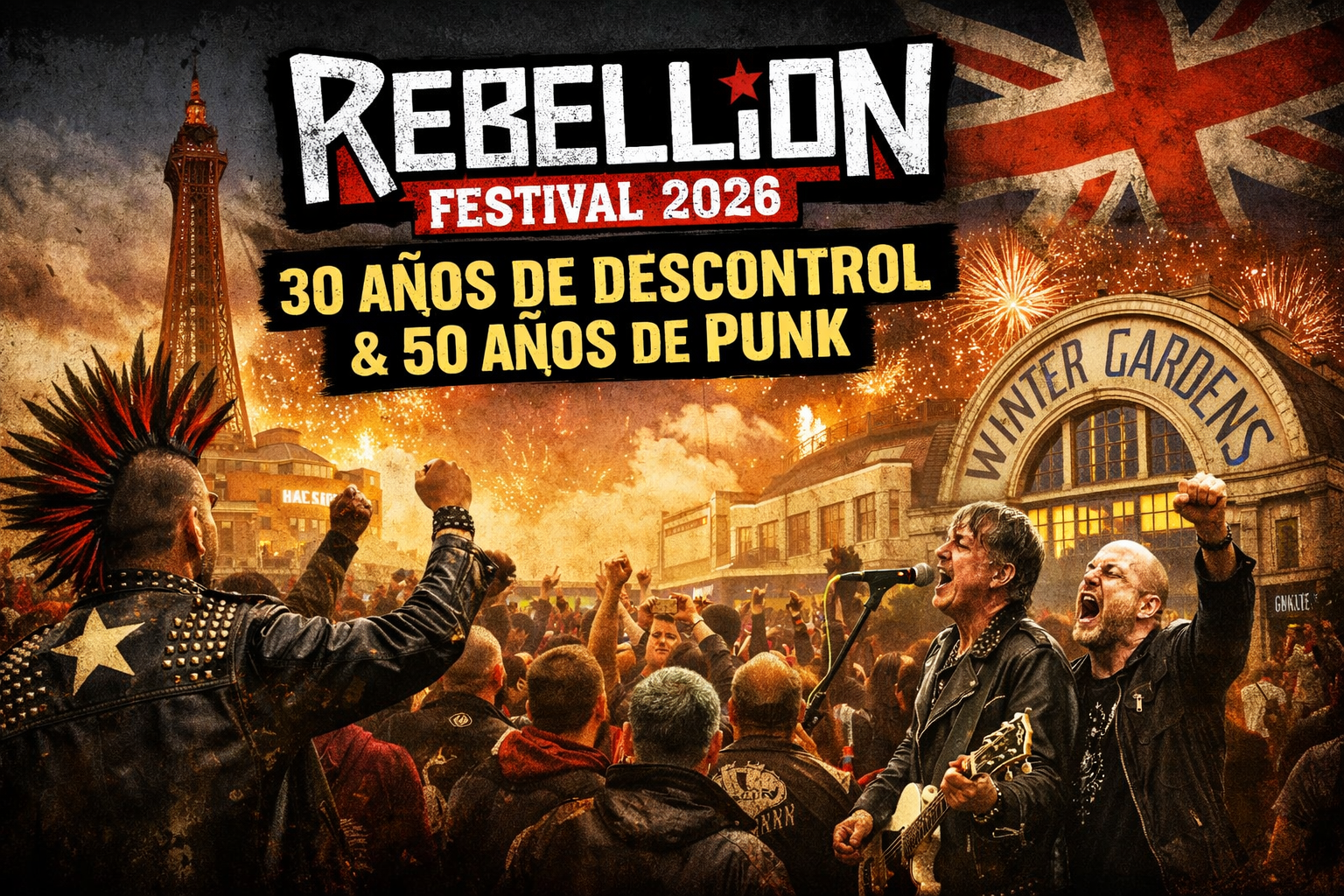 Hay festivales grandes, hay festivales históricos… y después está Rebellion. El del 6 al 9 de agosto de 2026 en el Winter Gardens de Blackpool no es uno más: cumple 30 años y encima coincide con los 50 del punk. Todo junto. Si eso no te mueve un poco el piso, no sé qué lo va a hacer.