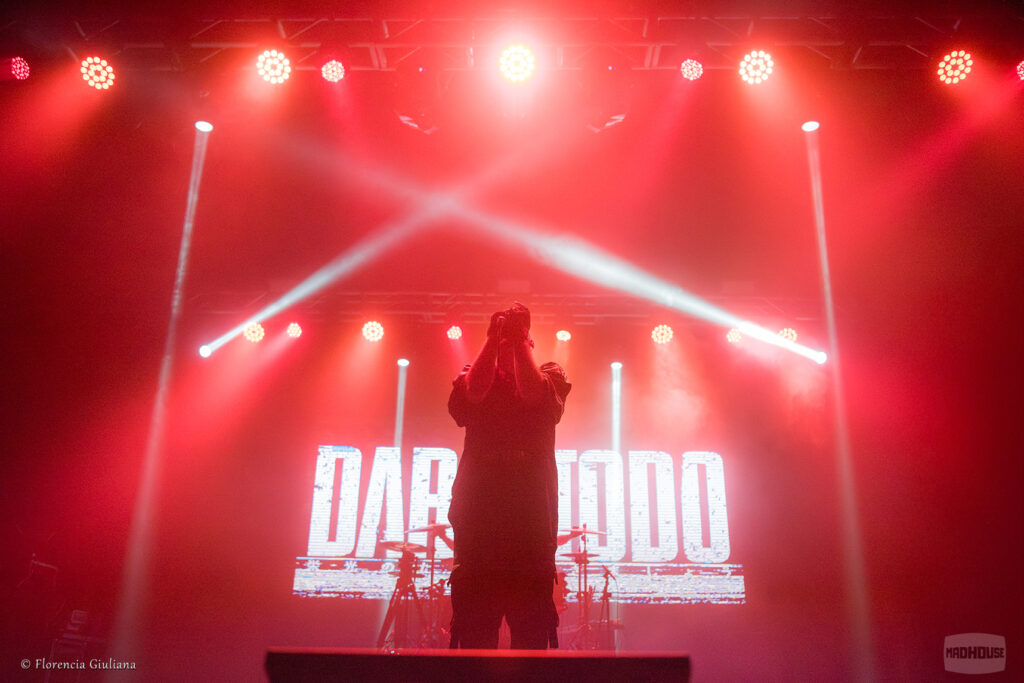 Una mezcla de curiosidad y entusiasmo me llevó a acercarme al Teatro Vorterix, y parece que no fui el único, ya que la fecha se encontraba SOLD OUT. Instalados dentro del recinto, y cuando el reloj marcaba las 20:30, DARLOTODO salió al escenario a modo de apertura con su propuesta que los emparenta directamente con bandas como Korn o Static-X. Las composiciones están armadas con bases bien grooveras, riffs saltarines y voces que van del susurro al grito casi gutural (al mejor estilo Jonathan Davis), ayudando a crear el clima de lo que estaba por venir. Repasaron algunas canciones pertenecientes a su disco autotitulado y, tras aproximadamente 25 o 30 minutos de show, se retiraron.